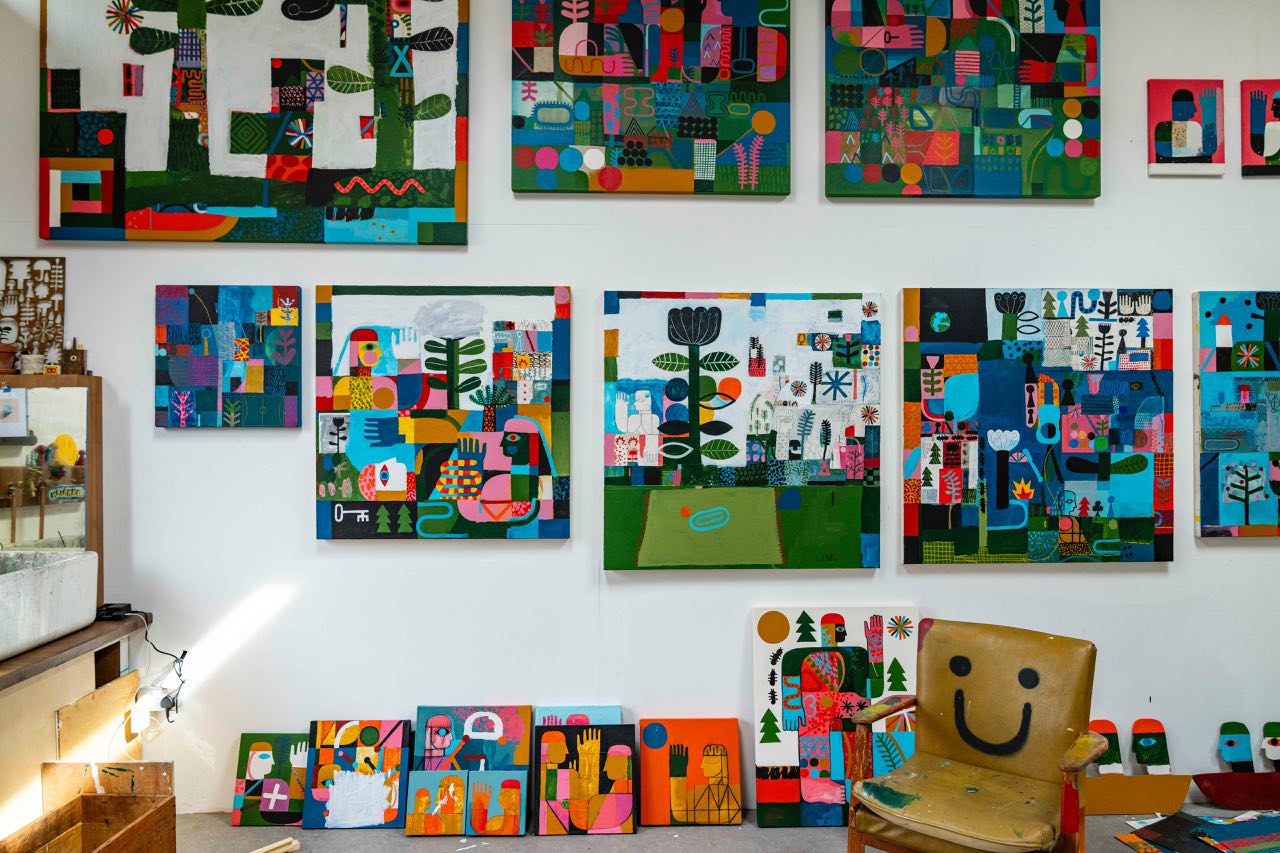 Born in Saudi Arabia and raised in London, David Shillinglaw is an English painter whose work spans various mediums, though he is best known for his paintings and murals. Through his signature style, which combines playful doodling with cultural references from ancient Egyptian hieroglyphics to medical symbols, he creates both lar. In his career, he has held solo exhibitions in cities around the world, including Los Angeles, Hamburg, Lisbon, Bristol, Amsterdam, Berlin and London, and published a number of books of his work.