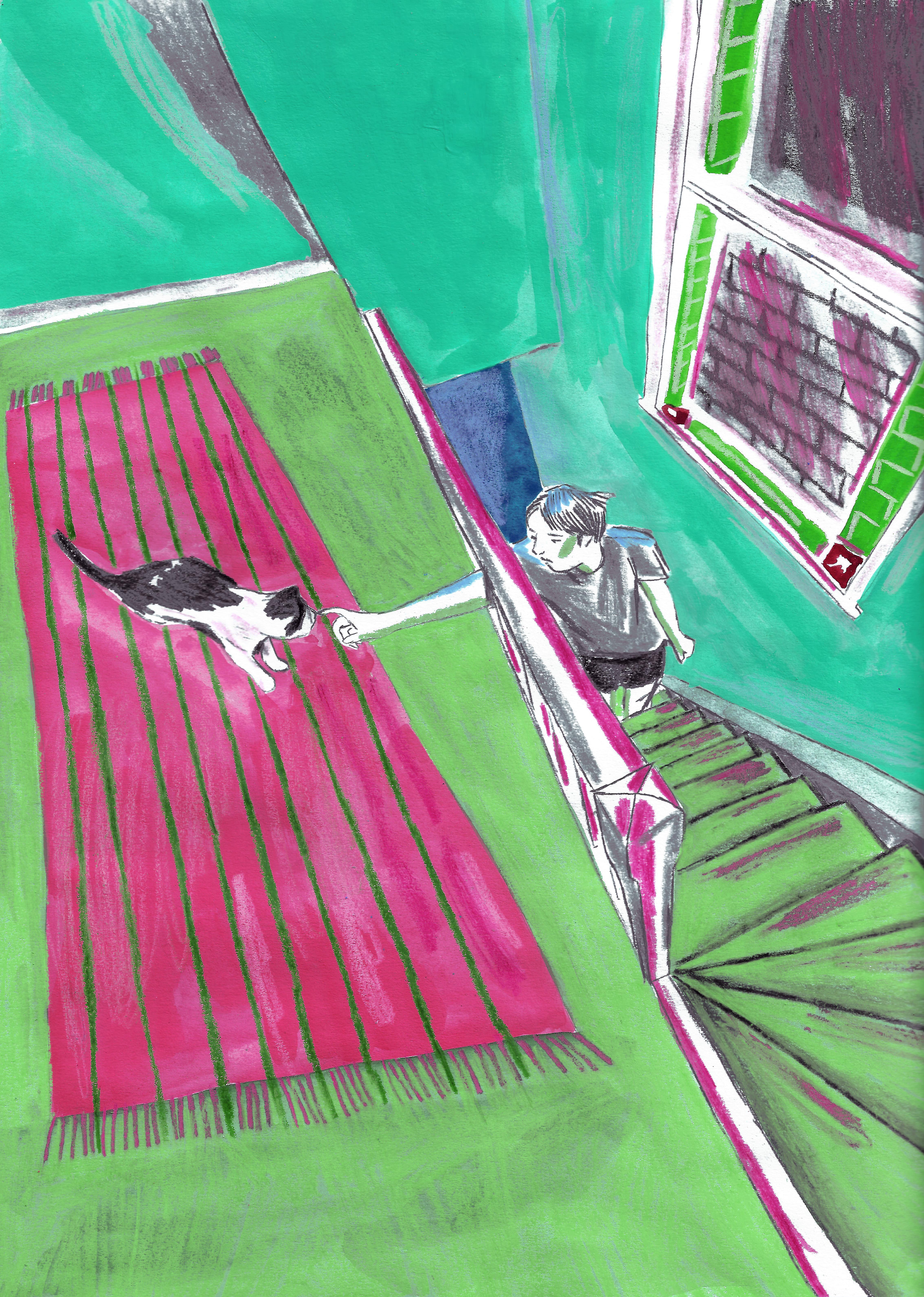 Also, any piece that seems to really connect to people. I drew a moment of how my cat comes to greet you when you come home, and I think it reminded people of their own pets doing the same. I love that, holding a tiny spotlight on little special moments that happen to all of us.