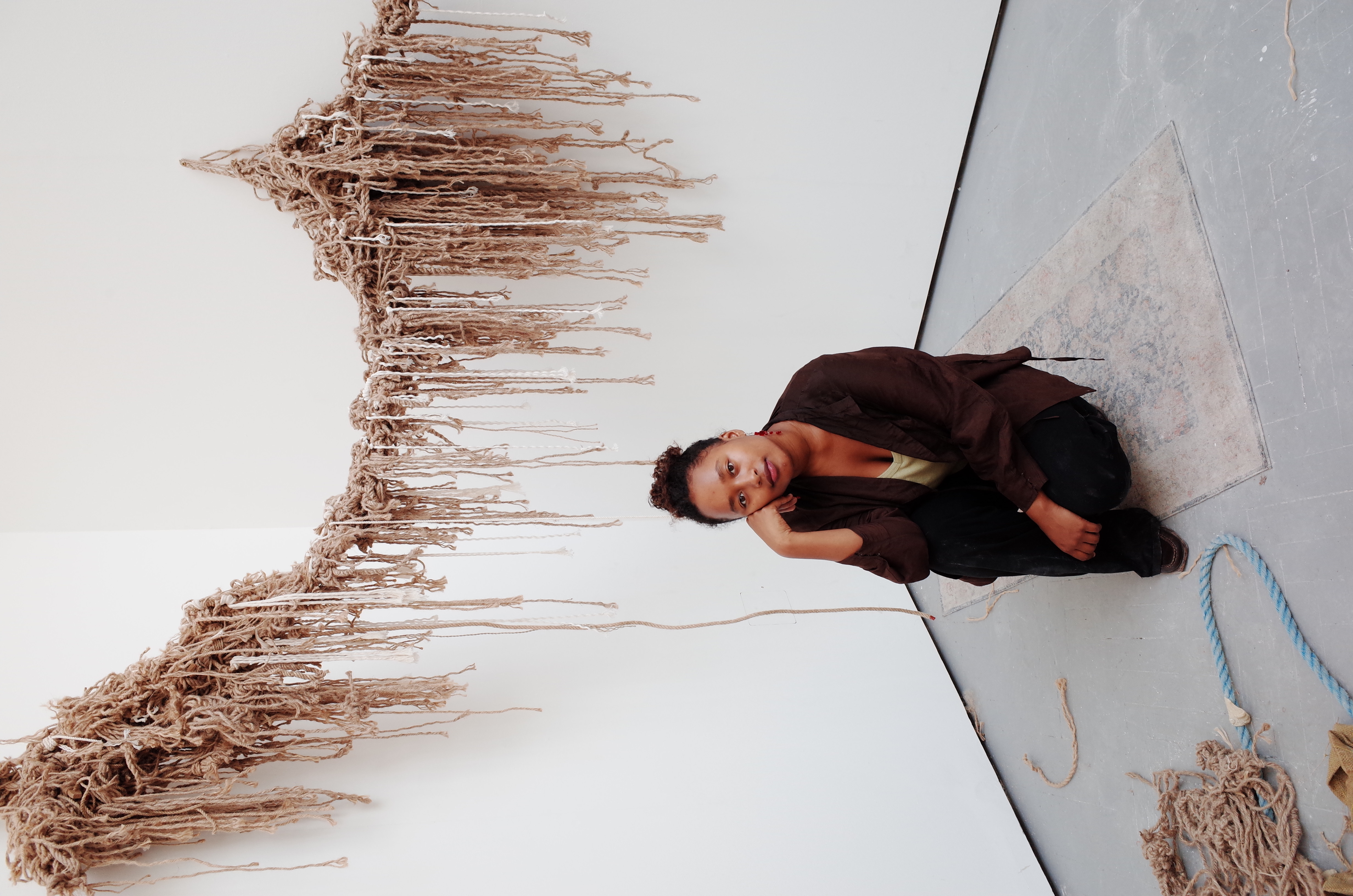 ‘I Want to Be Ready’ takes national symbols of authority and power, seeking to destruct and transform them through the acts of knotting and tearing. This simple gesture of the double knot is repeated throughout the show, a sign that transformation can occur when a basic gesture is enacted again and again.