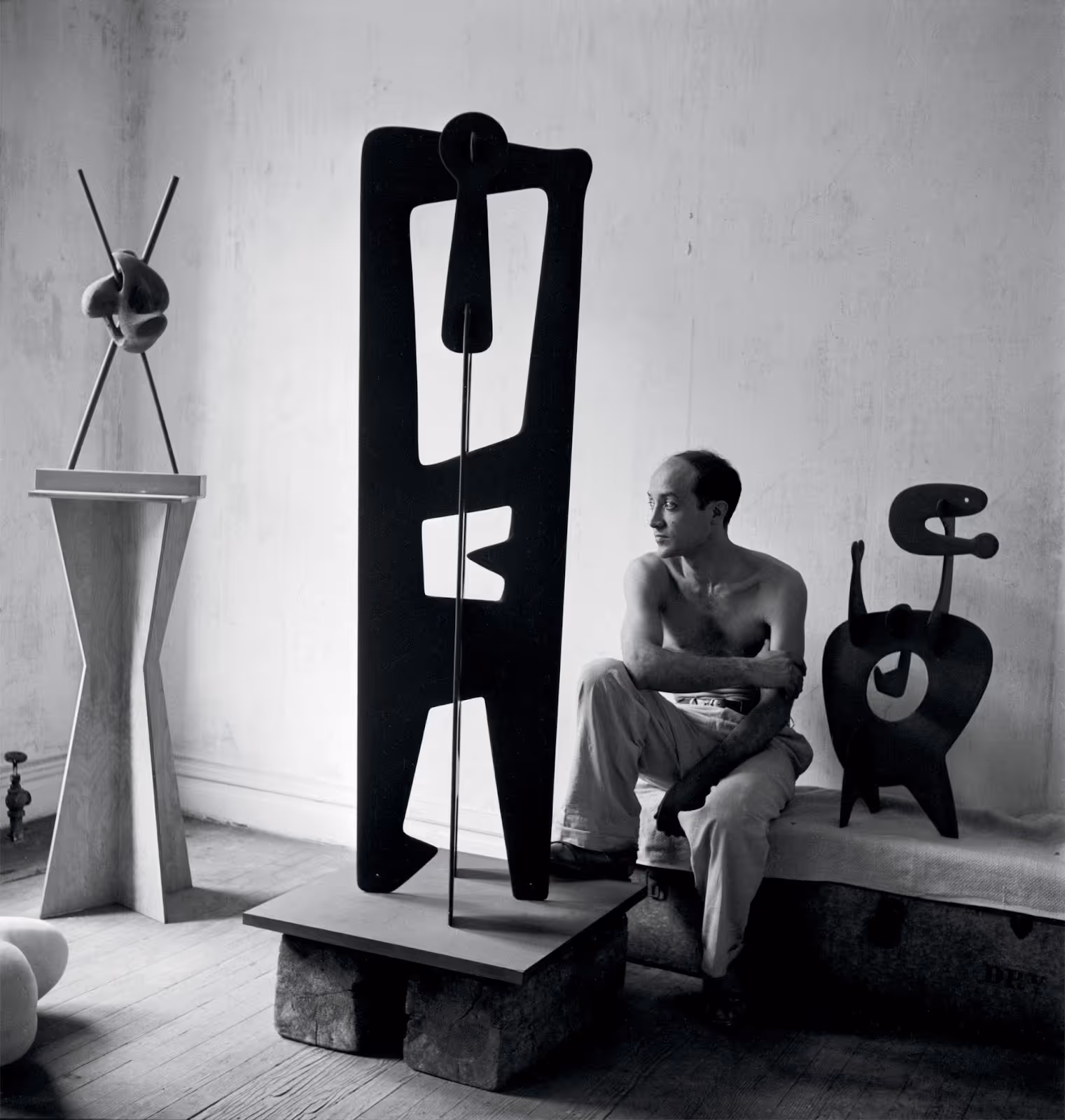 Exactly, yeah - by including that first section of her modelling, and two sections in this ‘Artists and Friends’ series, these build a portrait of a sprawling international network. It becomes a story about collaboration, about the fluidity of authorship and bringing a sense of the artists’ personalities to the fore. You’ve got these images of Joseph Cornell posing with some of his assemblages as if they’re part of his own head, and these Noguchi portraits, which are real favourites of mine… They were both at New York’s Art Students League in the 1920s; then, twenty years later, she returned and was reunited with Noguchi to create these wonderful portraits of him with his sculptures. They really draw out the corporeal quality of his abstract sculptures by posing him bare-chested beside them, and there’s a real intimacy there, a comfort not just from her experience as a model but also from her immense gift of friendship.