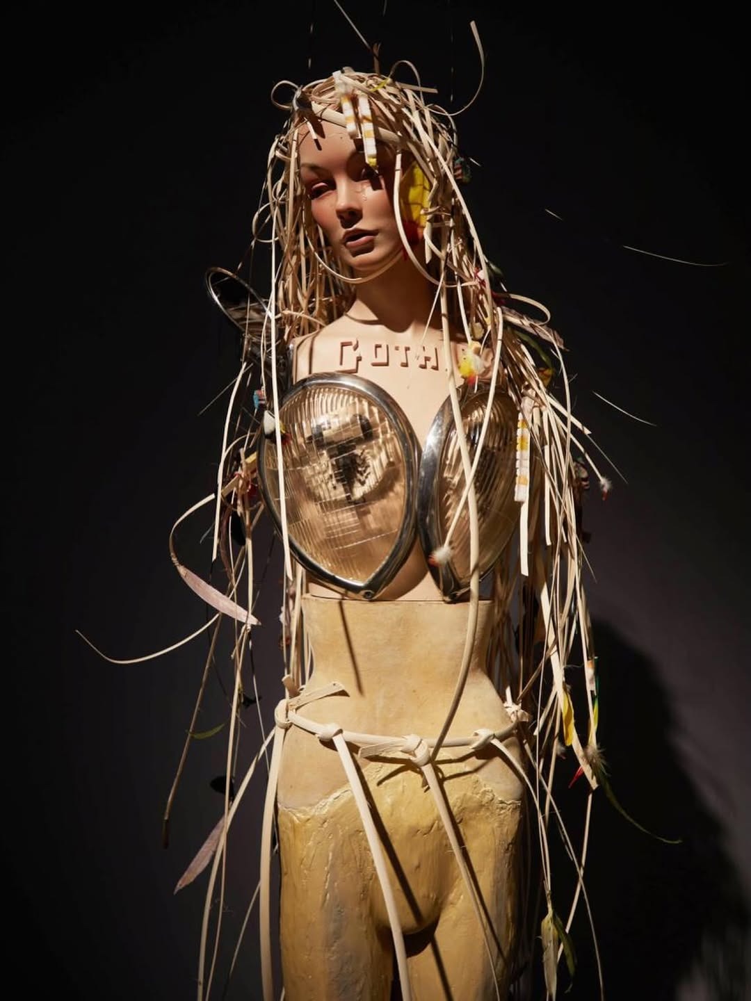 East-London gallery Soft Opening hosts New York’s Women’s History Museum for an exhibition titled Needle Trades: a series of new sculptures made from repurposed lingerie mannequins dating from the 1930s to 1950s. The new garments are crafted from historical and fetish materials, including 1890s French calico, printed latex, antique tokens, porcupine quills, bobcat fur, and clear leather, and exhibited on disassembled, pierced or masked mannequins; a landscape both fantastical and unsettling.