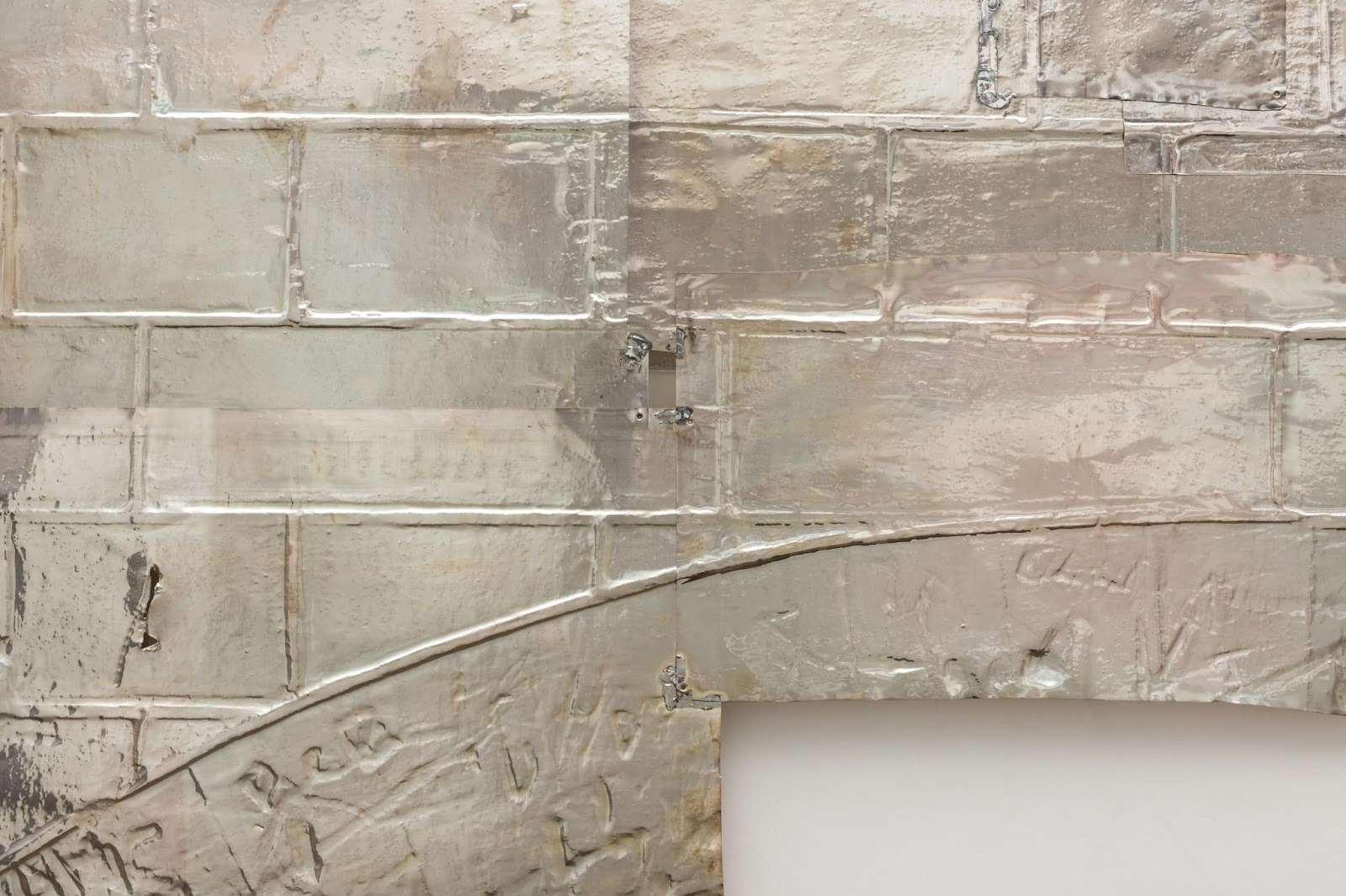I think he's fascinated with state changes and transformation. Metal features throughout this exhibition, both as a substance and as a material. We're sitting next to this vast photograph, taken in eight panels. The material is a silver gelatin print, so what you're looking at is silver on the surface of the paper, and the subject is also metal.