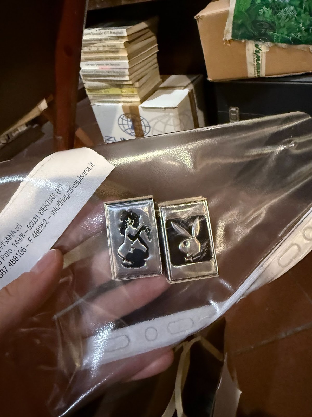 EWK: These are two Swedish-made matchboxes from Playboy’s very early days. I love lighters and matches — small objects that can ignite a big fire. Tiny potential explosions in your pocket.