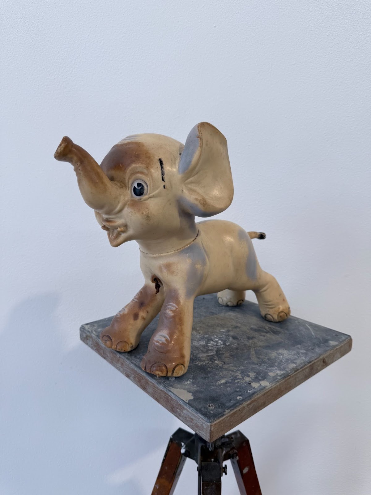EWK: I bought this rubber elephant from the 1950s at an antique market. I like its facial expression. It looks both scared and brave at the same time.