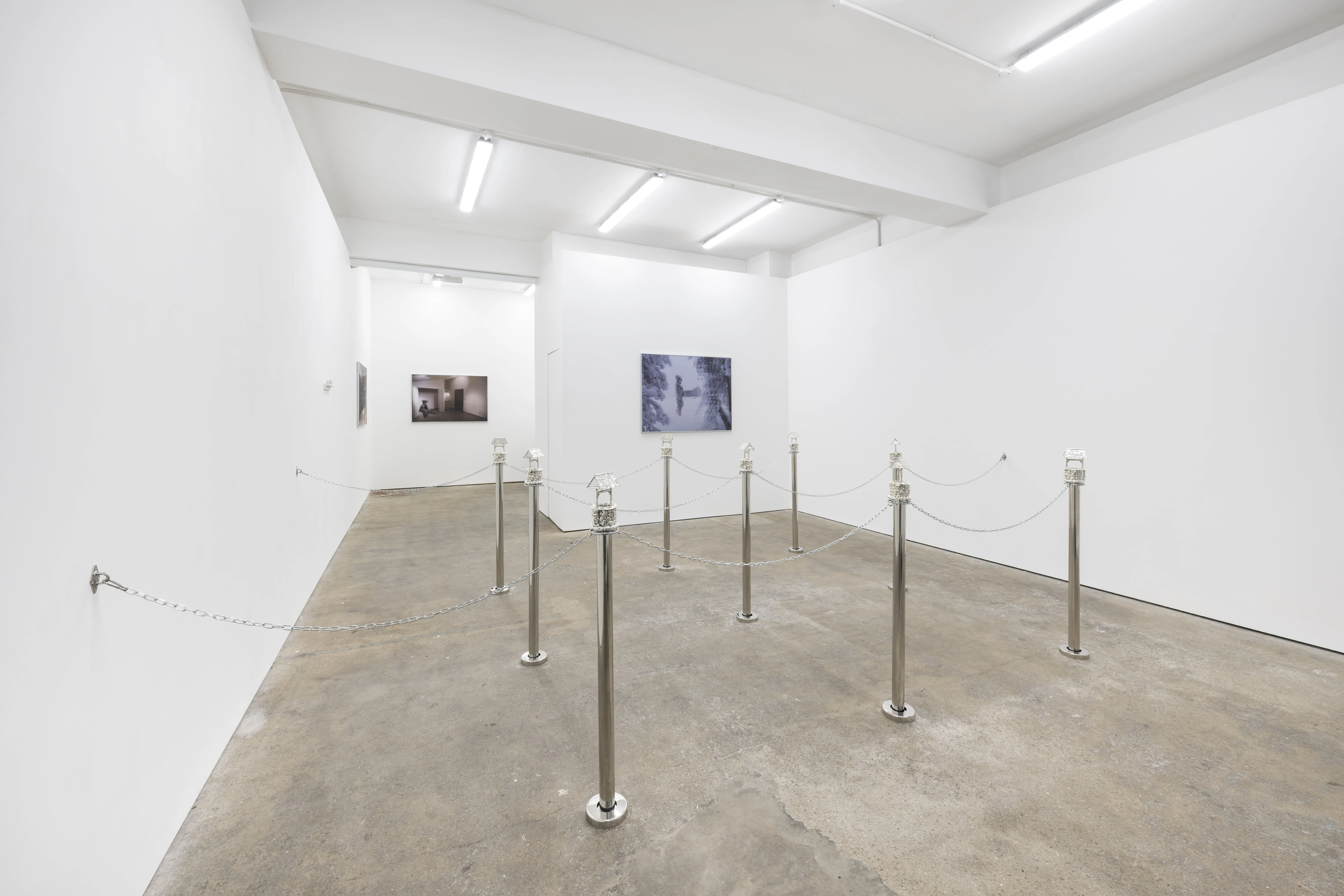 In the gallery, the visitor is invited to enter the space as if entering the queue of a park ride. This immediately creates a certain distance with the works, but also great expectations – and a feeling of temporality. Can you tell us more about the exhibition space and how you worked to craft the physical visitor experience?