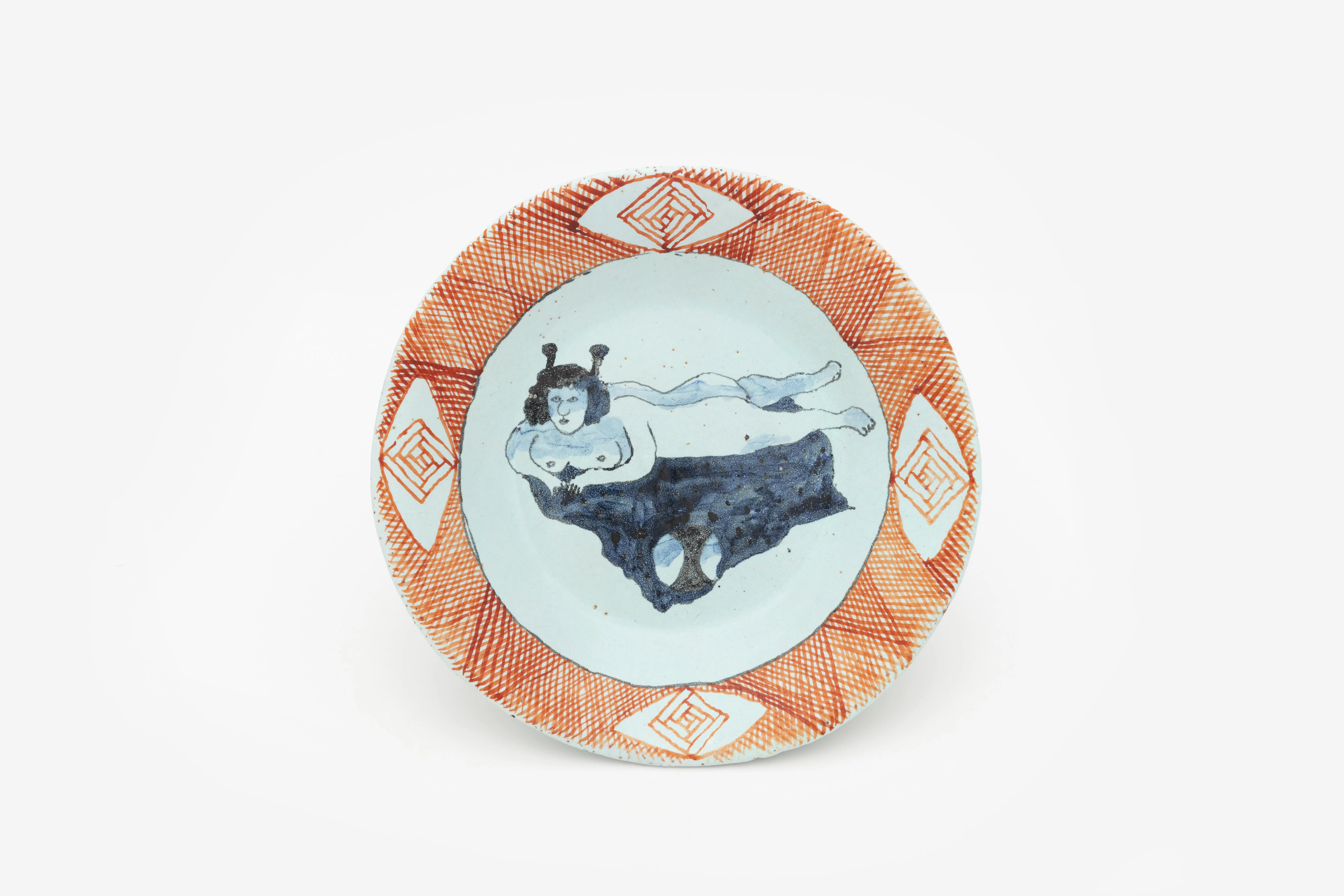 This plate is what I have to say celebrates the artist’s experimental and playful artistic process. He challenges his form, altering the borders of the plates. Some mimic wood grain in their decoration. Others will never be seen; destruction is an equally important part of his practice.
