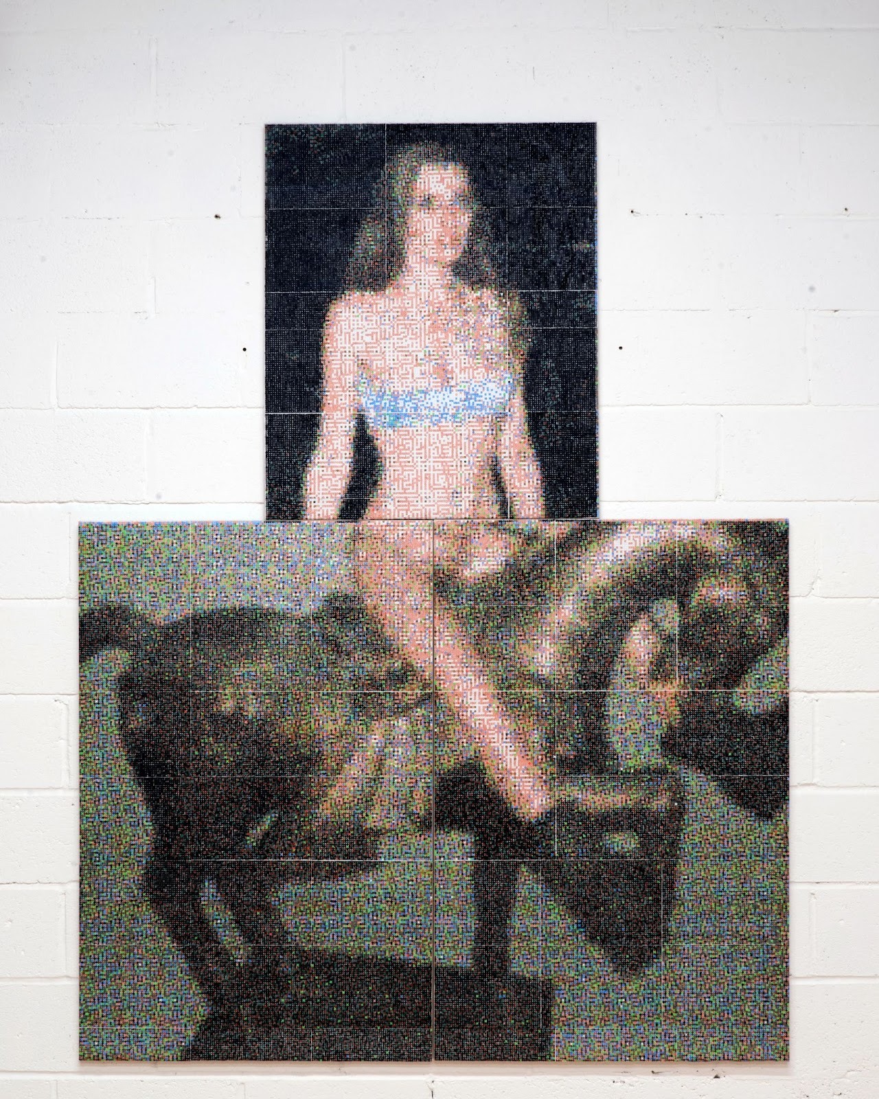 The process for making the painting plan comes from an old website. It was like someone's niche site about turning your family photo into a knit pattern. Anyway, I was also working as a maths teacher when I was reading this book, and having a really hard time. I was a teacher at this alternative provision school. And I was also living really far out of London, and I was never really seeing anyone. I just wanted an art practice that I could do to relax or when I was feeling quite low and didn’t really have the energy.